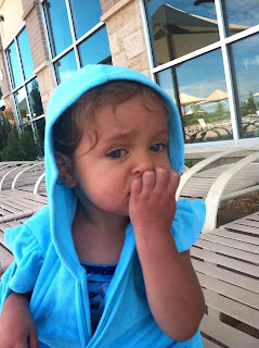 The summer has been hot and we went to the pool as many times as we could. Which wasn't many because I had to work in the mornings and the afternoon we didn't have time. She now likes to jump off the side of the wall, however she won't jump, she takes a big step instead and is holding my hands. I try to get her to jump or do it without holding my hands, but she hasn't been ready for that yet.